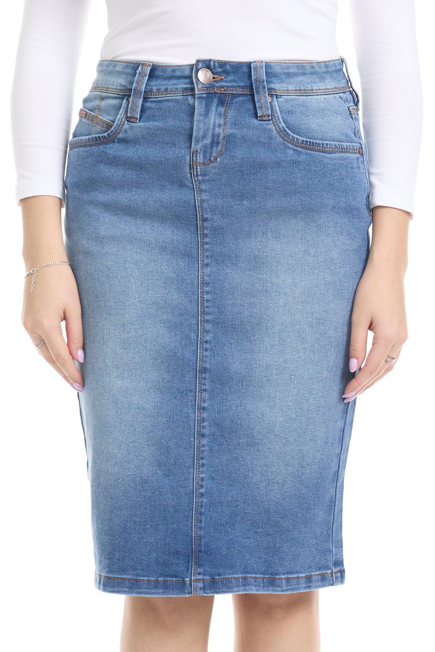 ESTEEZ Repreve Denim Knee-Length Jean Skirt for Women with Pockets - Melrose