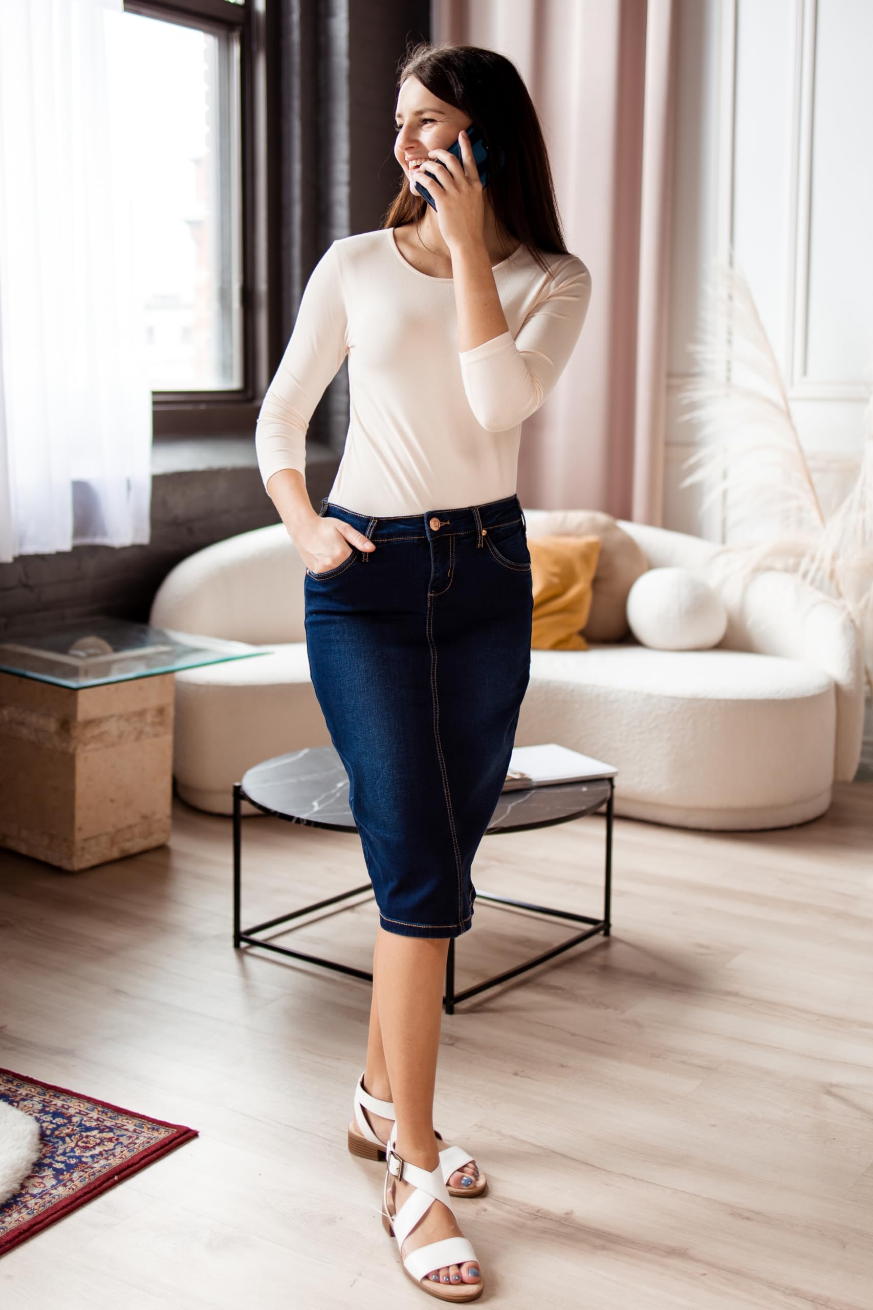 ESTEEZ Women's Slimming Denim Pencil Skirt with Tummy Control Panel – 'Miami'